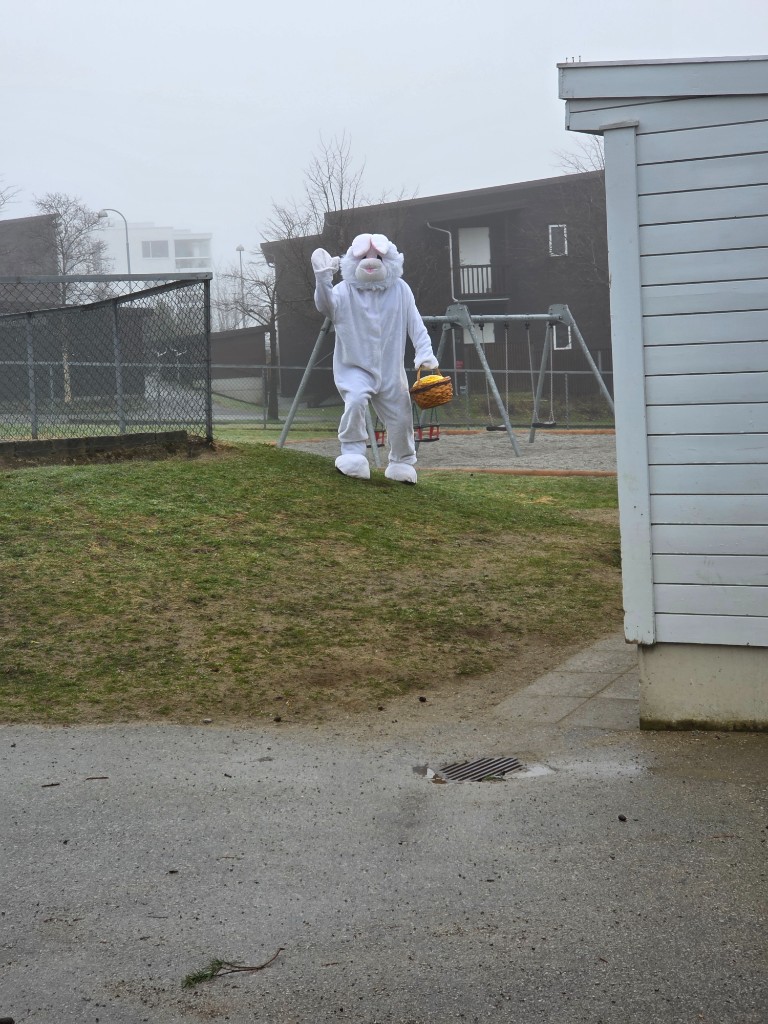 Før han hoppet videre hang han opp en rebus på dørene våre, vi skulle jakte påskeegg!! Vi måtte jobbe sammen, holde hender, klemme og løse gåter før vi til slutt fant egget! Oppi egget var det gulrøtter og sjokolade! Nam nam! Enda en vellykket påskefest her i Skadberg barnehage!