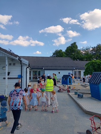 I mars har vi HMS uke i barnehagen. Vi har to brannøvelser, en varslet og en uvarslet. Vi øver på hva vi skal gjøre hvis brannalarmen går i barnehagen. Vi ønsker at det skal gjøres så reelt som mulig, og sitter ikke klar med jakke og sko i garderoben og venter. Det er veldig viktig at alle får erfare brannalarmen, og at vi faktisk må komme oss ut til møteplassen vår uten jakke og sko uansett vær. Noen syntes at det kan være litt skummelt med brannalarm, det er en høy lyd, men vi voksne trygger barna så godt vi kan!