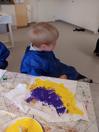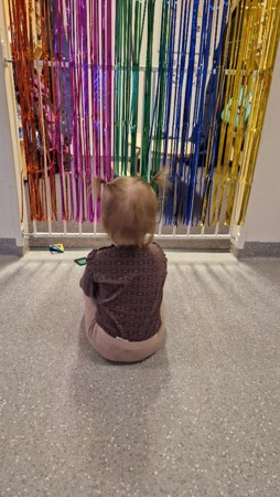 I Skadberg barnehage har vi fargefest i februar. Vi oppmuntret alle til å ta på seg fargerike klær og pyntet hele huset i flotte farger. I forkant av fargefesten hadde vi laget kunst som vi pyntet med og instrumenter.