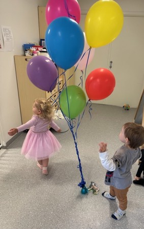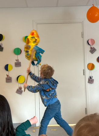 På forhånd hadde vi spurt barna hva de mener vi burde gjøre på barnehagen sin bursdag, og hva de forbinder med bursdagsfeiring. Svaret var klart og tydelig: ballonger, pizza og kake!